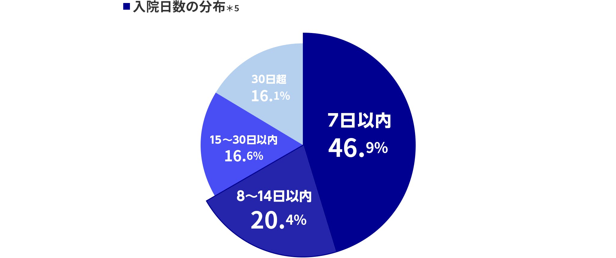 入院患者のうち、約3分の2の方が、2週間以内に退院しています。