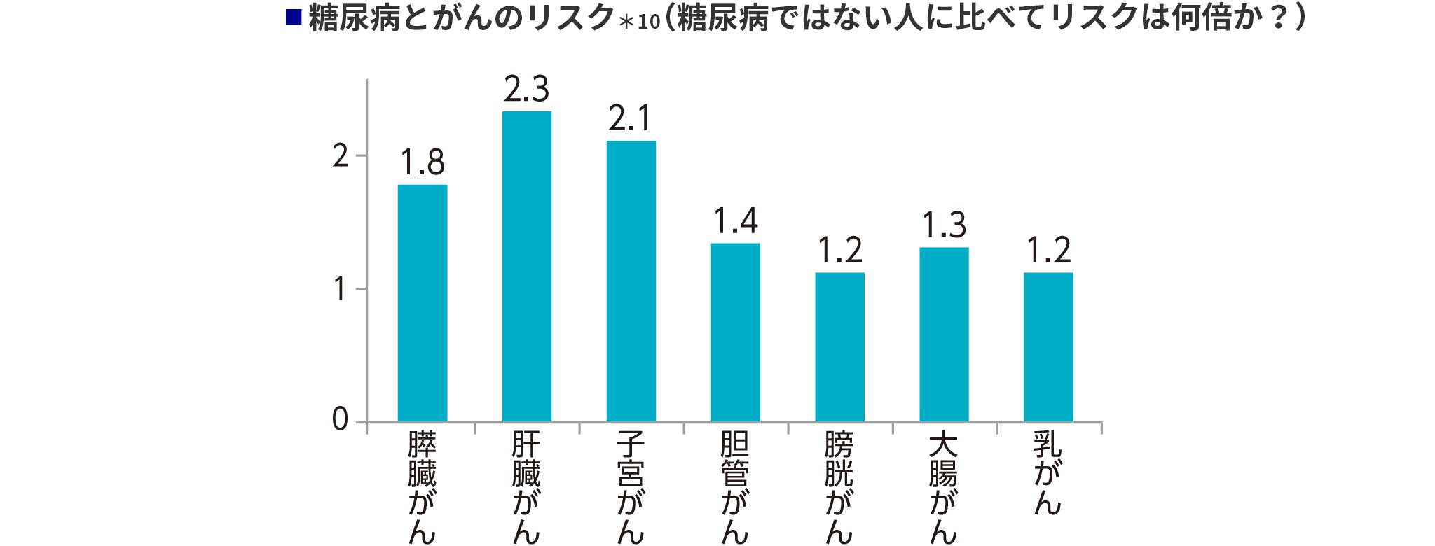 また、糖尿病を患っていると、脳卒中、虚血性心疾患などの心血管疾患の発症・進展を促進することも知られています。*11