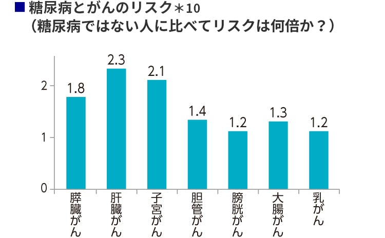 出典:「同友会メディカルニュース2013年4月号」 糖尿病患者の相対的がん発症リスク