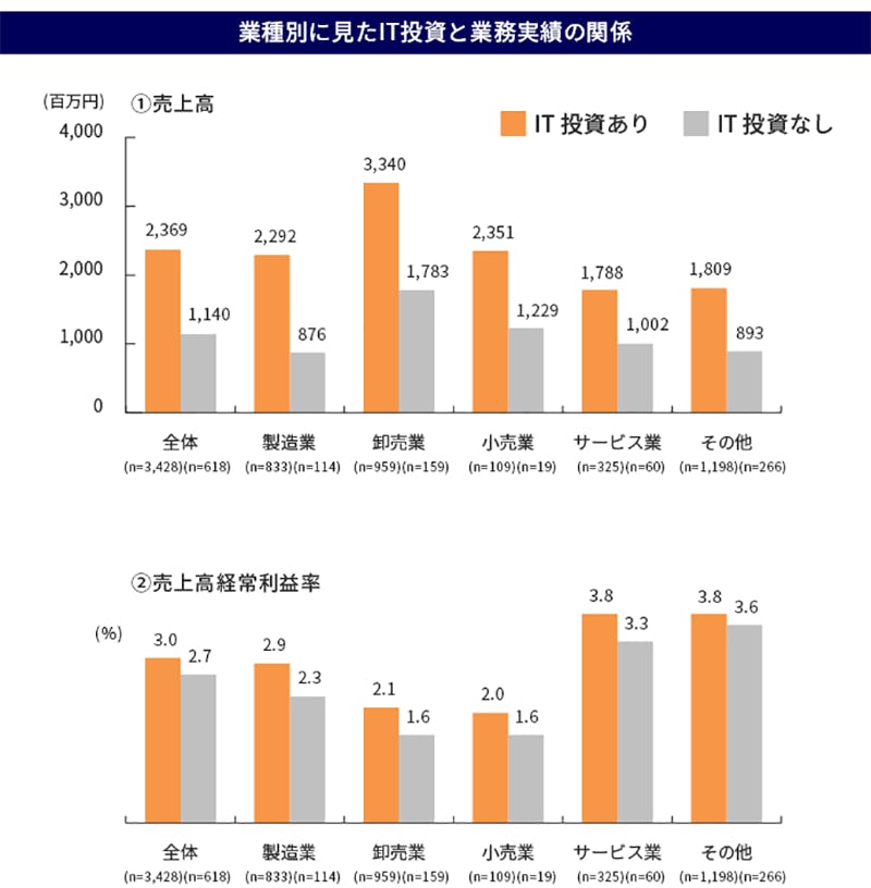 では、IT化ができている企業とそうでない企業にはどのような差が出てくるのでしょうか?調査データで見てみましょう。