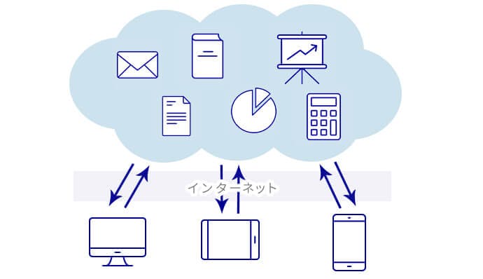 ITサービスを利用する際に必要なインフラやソフトウェアがインターネット上の雲(クラウド)の中に用意されており、利用者はサービス提供者と契約することで、必要な時に必要な分だけサービスとして利用することができます。