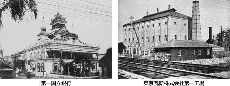 設立や経営に携わった企業として、東京瓦斯、東京海上火災保険(現・東京海上日動火災保険)、東京株式取引所(現・東京証券取引所)、帝国ホテル、帝国劇場、石川島造船所(現:IHI)、秩父鉄道、京阪電気鉄道、札幌麦酒(現・サッポロホールディングス)、東洋紡績(現・東洋紡)など多数あり、そのうち約6割の会社は現在も何らかの形で存続しています。