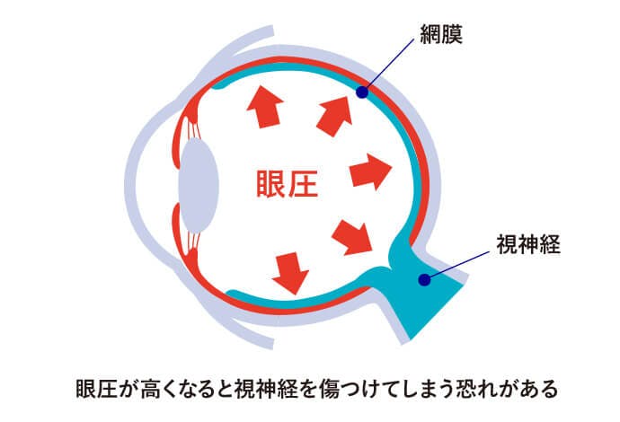 日本での失明原因の第一位である緑内障は、最近になって、疾患の概念が変わってき たものの一つです。以前は、房水で満たされた眼球の圧、つまり眼圧が高まり過ぎて視神経を傷つけるとされていましたが、現在では、眼圧に限らず、加齢による視神経へのダメージが何らかの理由で通常より加速したものと捉えられています。視神経とは120万本もの神経線維が集まってできており、レンズで捉えた映像を大脳に伝える役割をしています。この視神経は、眼病のない人でも年間5,000本程度失われており、70万本ほどあれば視機能に問題はありません。単純計算でも5,000×100年ですから、100歳を超えると見えづらくなってくるといったイメージでしょう。ところが、緑内障にかかると神経の減少が加速します。症状の進行はゆっくりなのでなかなか自覚できませんが、視野の一部が欠けたり、狭くなっていきます。一度、傷ついた視神経を修復するのは難しいので、視力や視界に少しでも変化を感じたら、すぐに検査をして発見することが重要です。早期に発見できれば、点眼薬や内服薬などで治療も可能です。