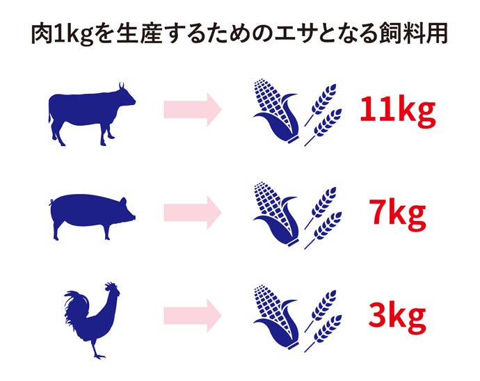 また、水の不足と密接に関係しているのが、タンパク質の不足だそうです。貴重なタンパク源となる食用肉の中で、特に牛の畜産では、11kgの飼料用穀物を食べさせてやっと1kg分の食肉を確保できます。大豆などの飼料を作る水と牛が飲む水を確保することは、同量の栄養素を持つ穀物を作るのと比べて10倍の水が必要だといわれています。食用肉の確保は非生産的とされ、タンパク源の確保が困難になる未来も遠くありません。