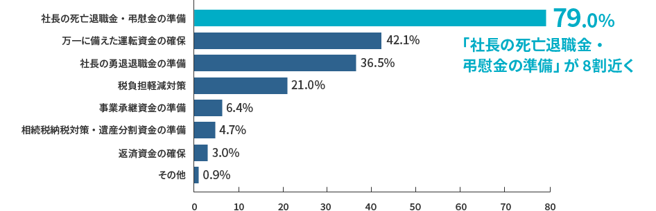 社長の生命保険加入目的が「社長の死亡退職金・弔慰金の準備」… 79.0%