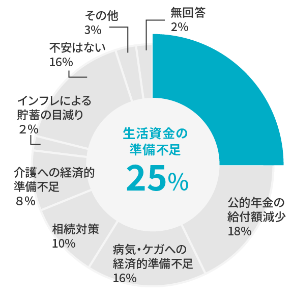生活資金の準備不足が不安 … 25%