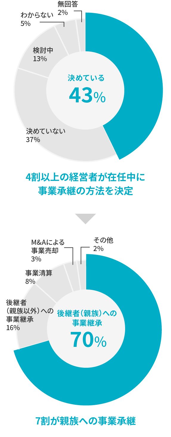 このうち70%が親族へ事業承継を考えています。