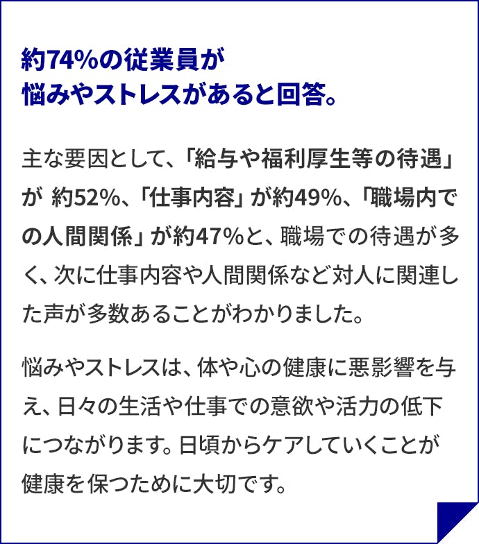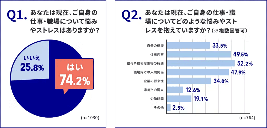 従業員数300名以下の中小企業で働く会社員(経営層除く)に、仕事や職場でのストレスと、