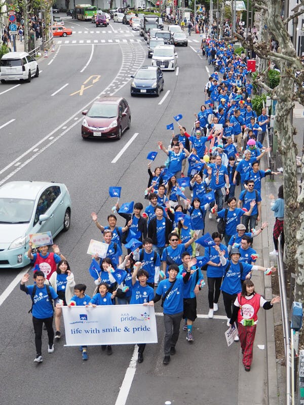 アクサ生命は、2019年4月28日に開催された日本で最大規模と言われるLGBTQ+の祭典「東京レインボープライド」に参加しました。このパレードに当社は2017年から参加しており、今年で3回目となりました。