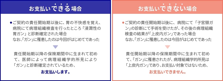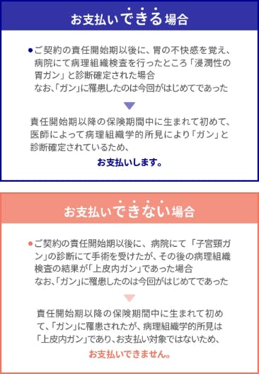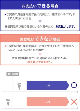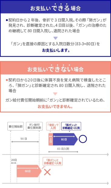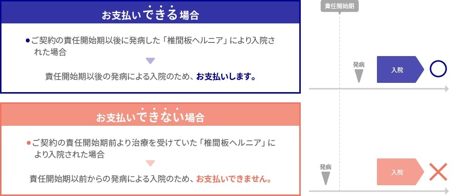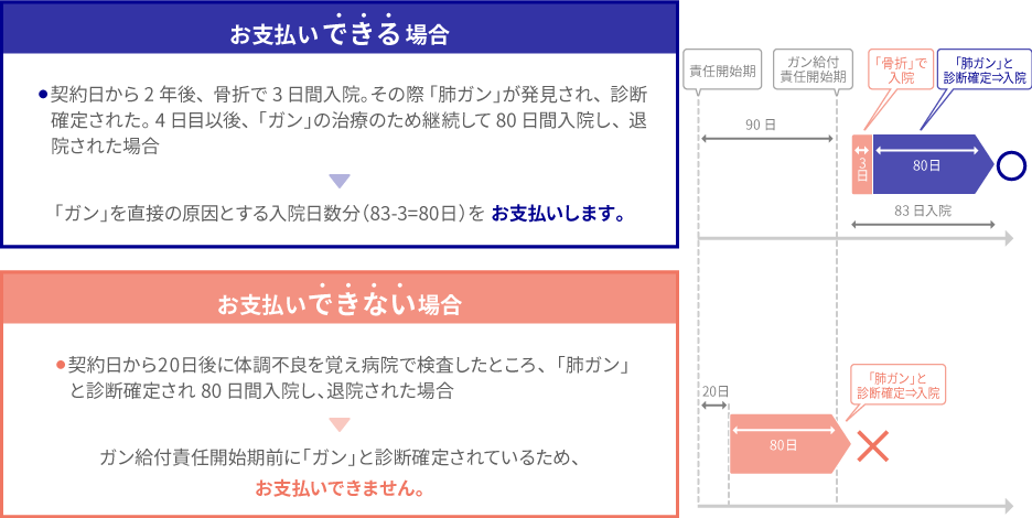 責任開始期から2年を経過して開始した入院・手術については、責任開始期前の疾病や事故を原因とするものでも保険金・給付金をお支払いする場合があります。