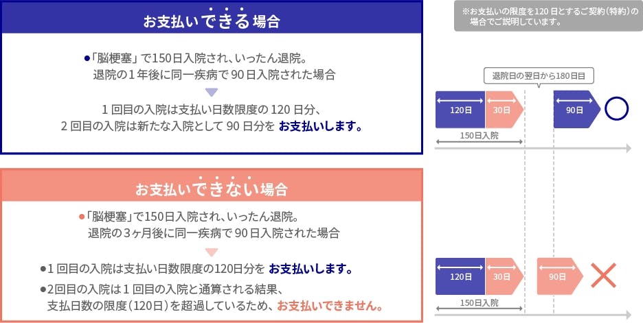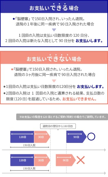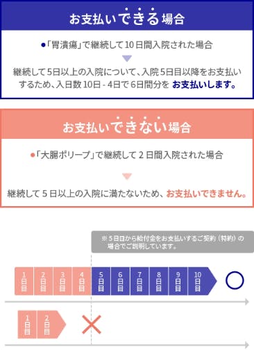 入院給付金をお支払いするご契約(特約)にはいくつかの種類がありますが、いずれも約款で最低限必要な入院日数を定めています。