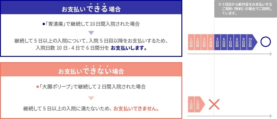 ■ 継続して2日以上の入院が対象となるタイプ (終身医療保険(03)など)