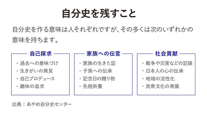 それでは次回、このトピックのまとめとして、「自分史」がこれからの未来にどう生かせるのかについて、ご紹介したいと思います。