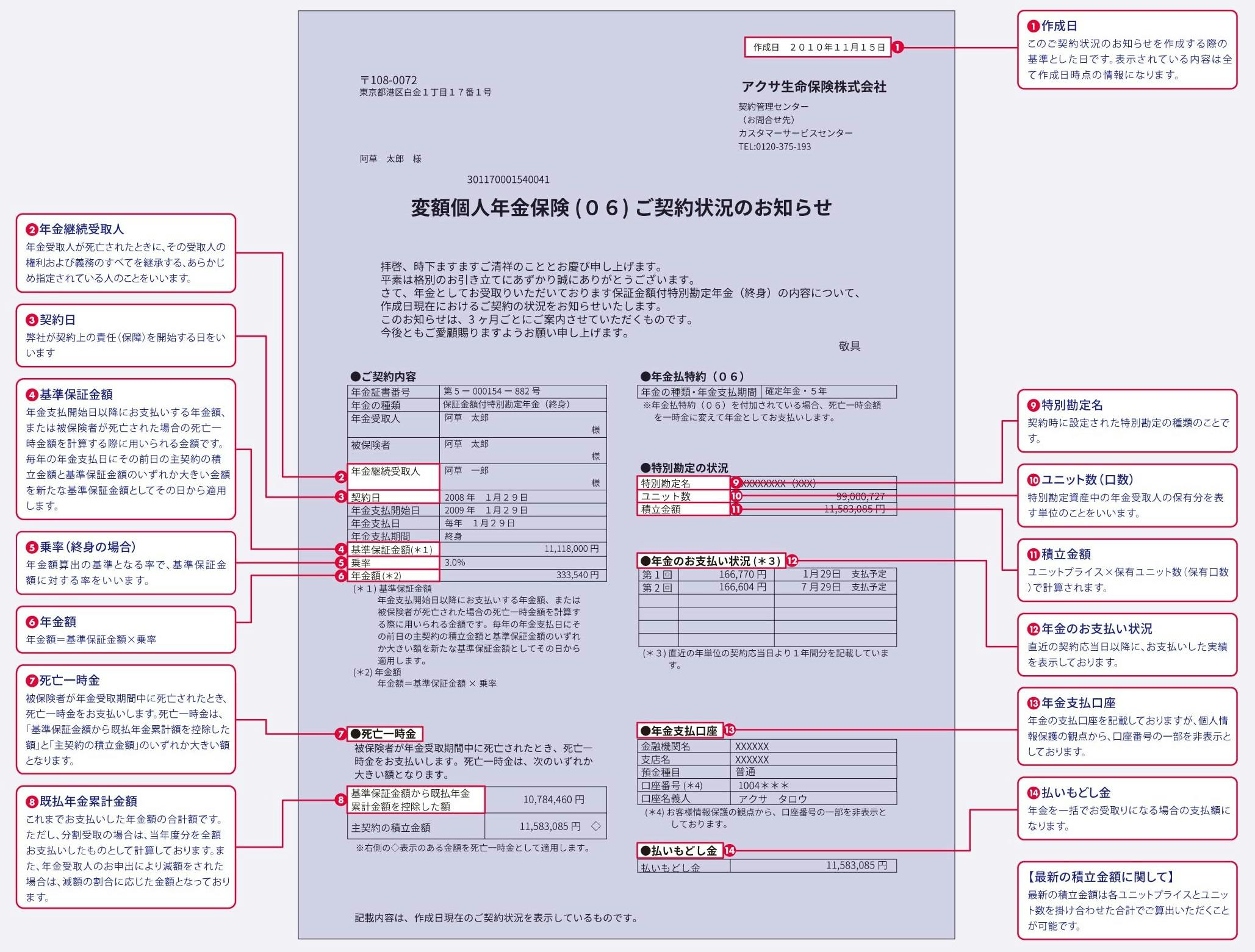 (「ご契約現況(状況)のお知らせ」の見方については以下をご参照ください)