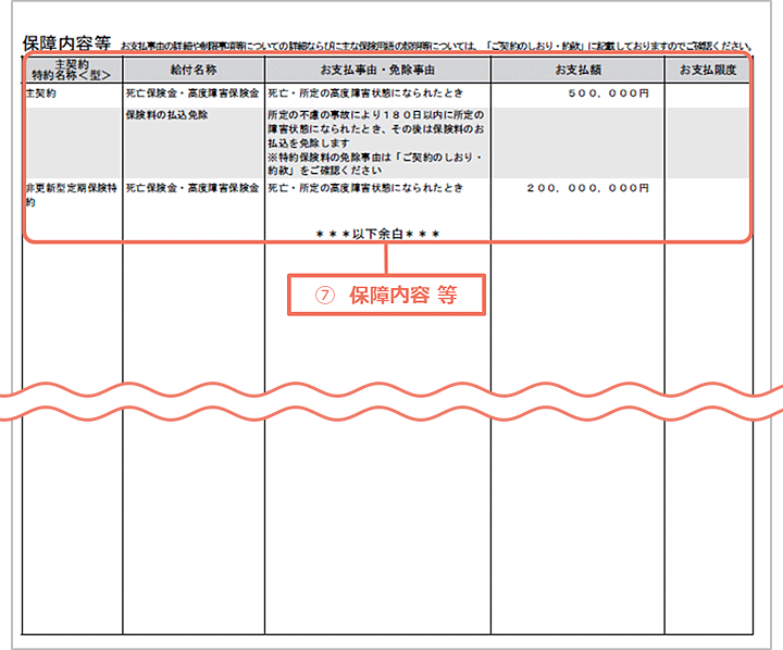 ⑦ 保障内容等