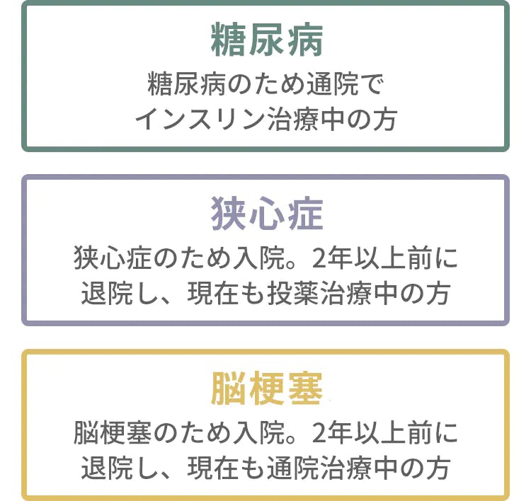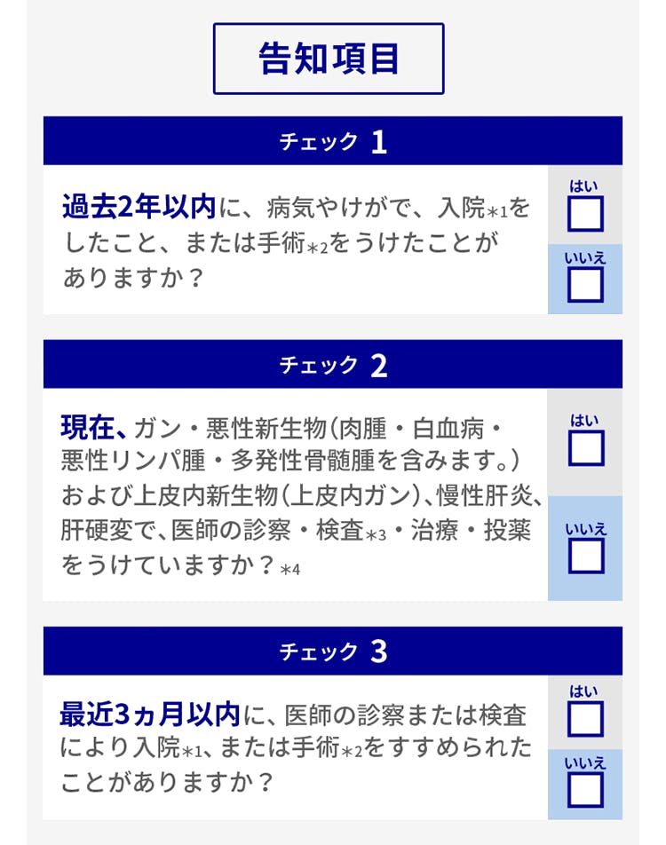 持病のある方や、過去に入院・手術された方も、3つの告知項目に該当しなければお申込みいただけます。
