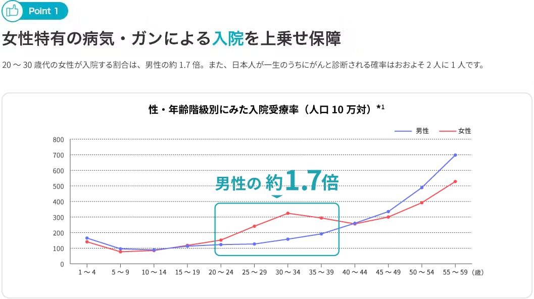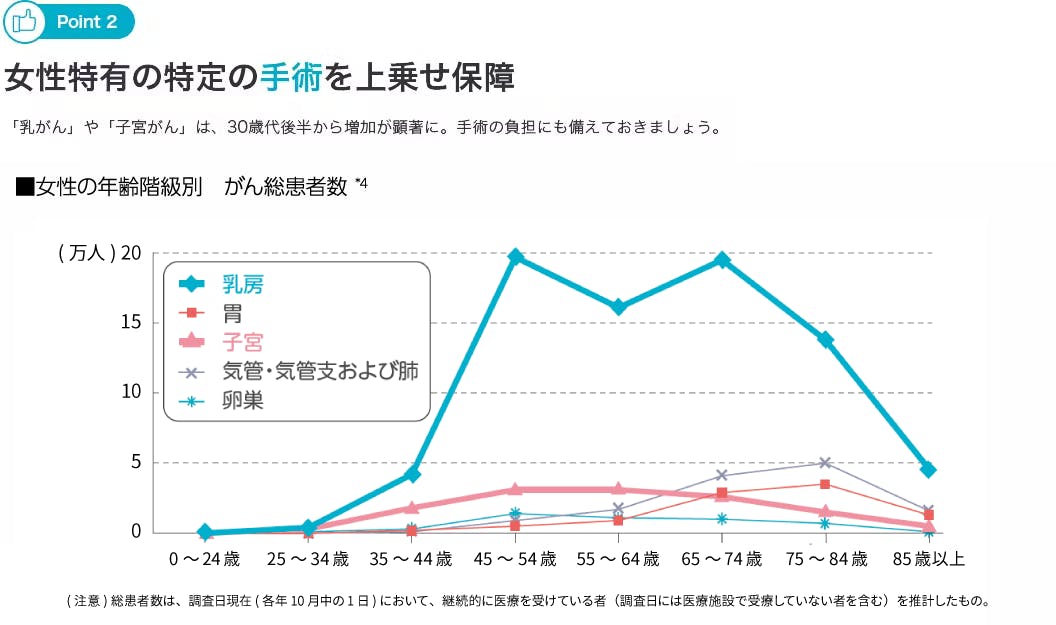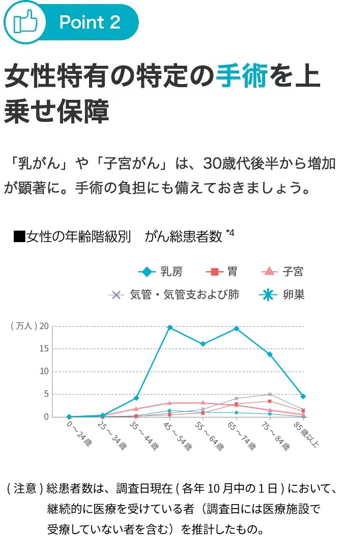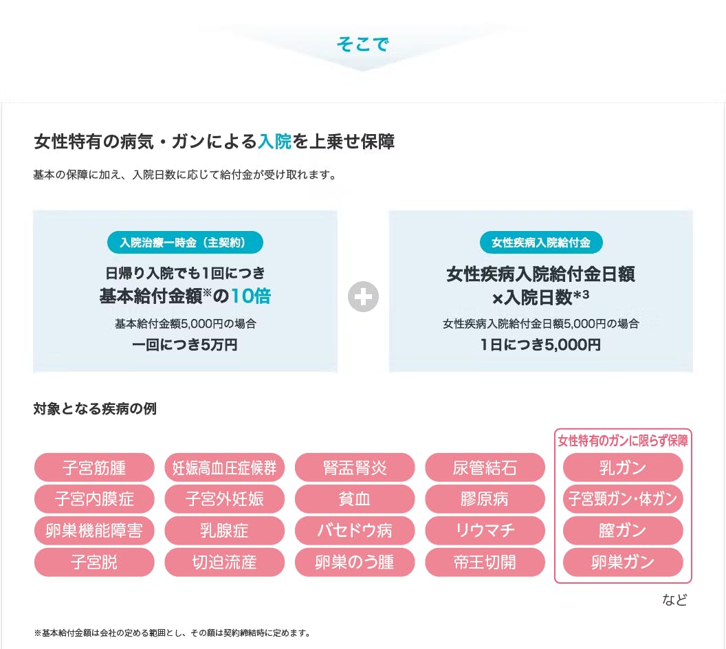 ⼥性特有の病気を⼿厚く保障!⼥性に優しい⼀⽣涯の医療保険です。