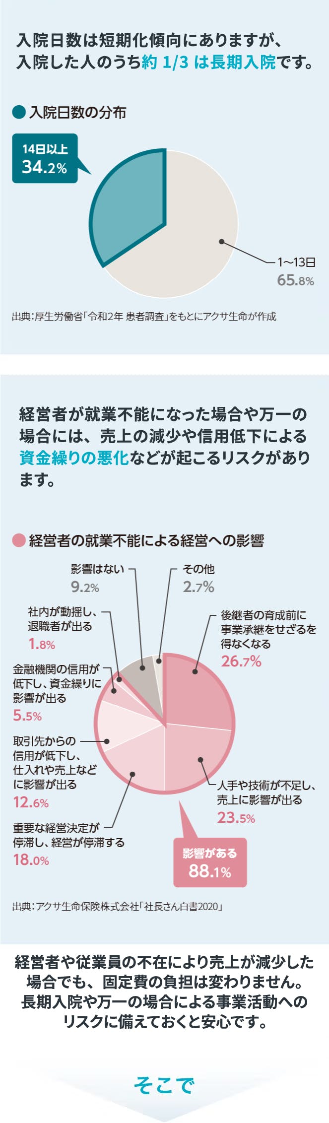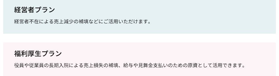 経営者や従業員の長期入院などによる事業活動へのリスクに備える変額保険です。