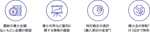 特別勘定への繰入割合の変更や、他の特別勘定へ積立金の移転を行うことができます。