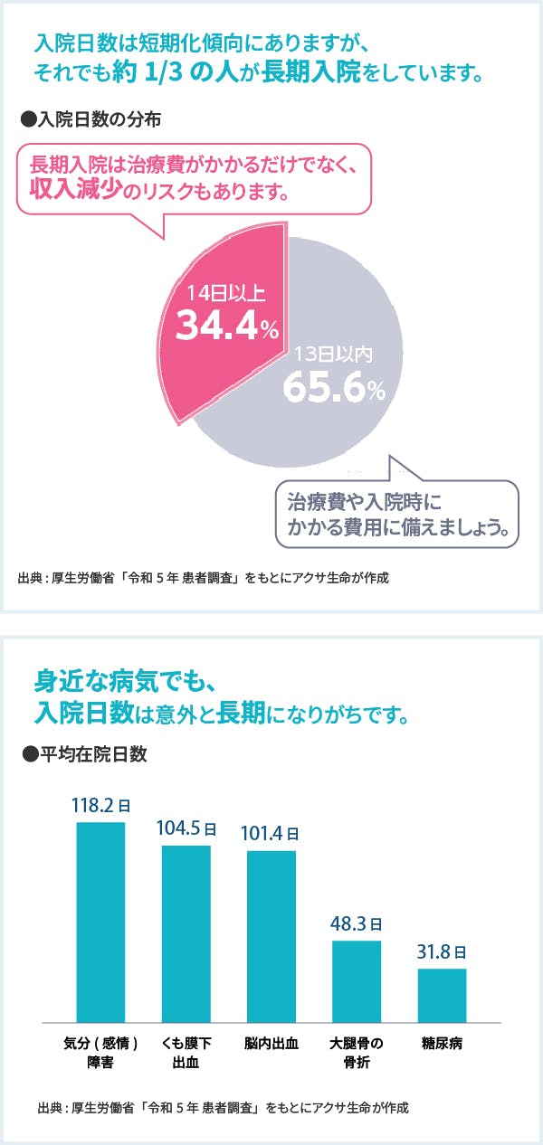 • ​継続して14日以上入院したときは、継続入院収入一時金として基本保険金額*1をお支払いします。