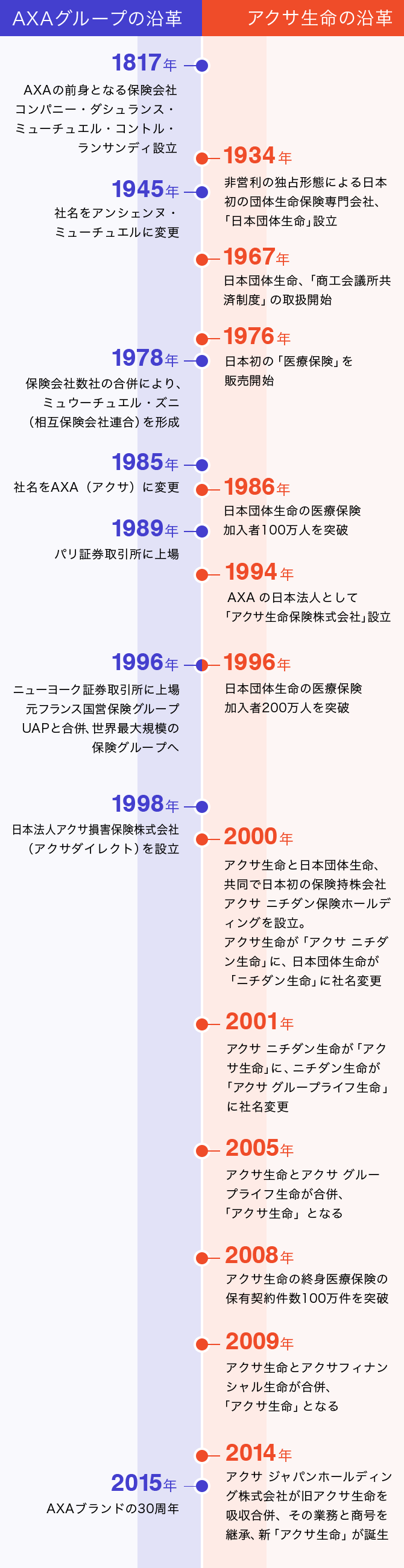 アクサは1817年にフランスで生まれ、世界51の国と地域、約9,300万人のお客さまにサービスを提供する、保険および資産運用分野の世界的なリーディングカンパニーです。アクサグループは日本において、保険事業、資産運用事業、アシスタンス事業など、多岐にわたるビジネスを展開しています。